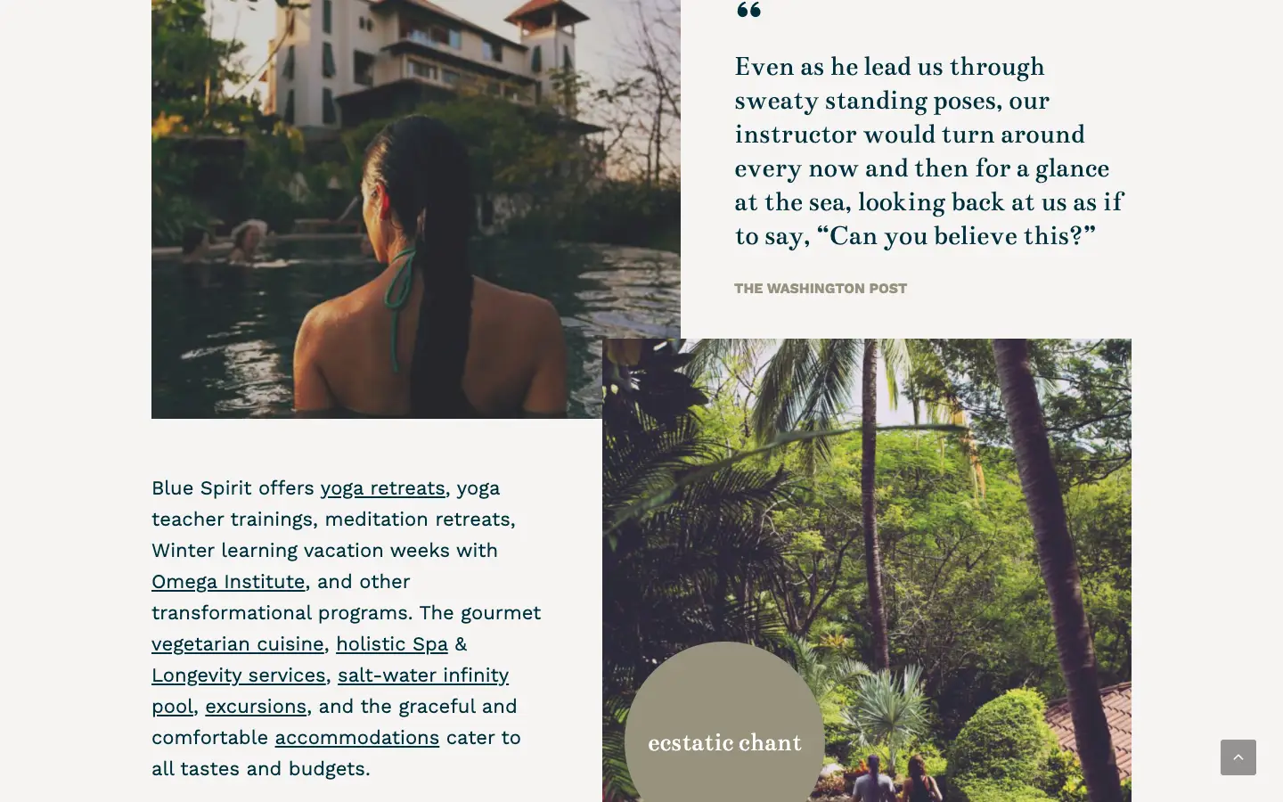 Blue Spirit Costa Rica provides an extraordinary setting to all who are dedicated to spiritual transformation, personal development, and environmental sustainability. Perched on a hilltop that overlooks the Pacific Ocean and a three-mile long white sand beach that is protected as a turtle refuge – Blue Spirit offers an extraordinarily beautiful and natural setting on one of Costa Rica’s renowned white sand beaches, supporting your retreats, workshops, and trainings to be a deeply nurturing and unforgettable experience.